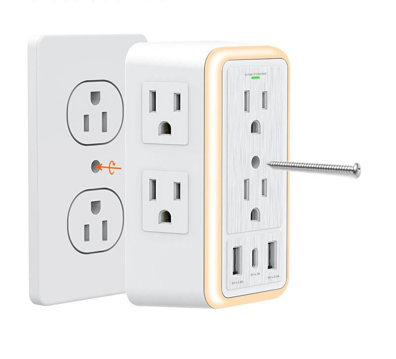 10 IN 1 multifunctional Outlet-6 AC outlets with 2.1 inches long space in between,2USB A & 1USB C Smart Charging Ports(Total 3.4A)Smart night light with touch sensor, three levels ofadjustable brightness let you choose the right amount oflight for your own needs.